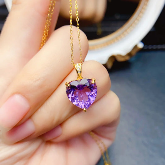FS 12mm Fine Natural Amethyst Pendant Real S925 Sterling Silver Charm Weddings Jewelry Gift for Women With Certificate MeiBaPJ