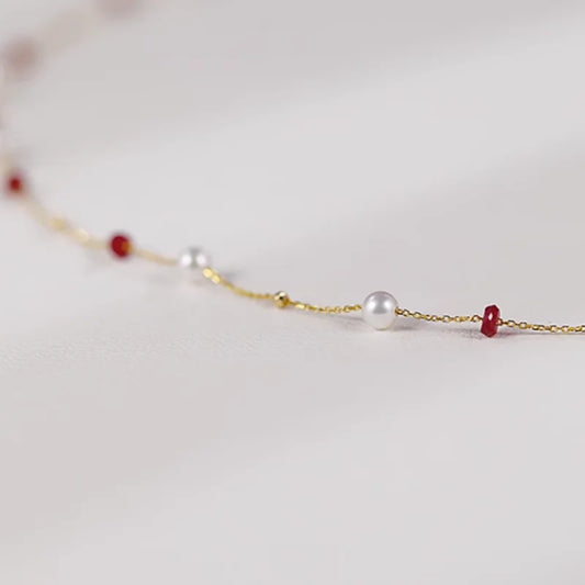 Fine Jewelry 18K yellow natural ruby Freshwater pearl Necklace Pendant Wedding Gift For Women X2004