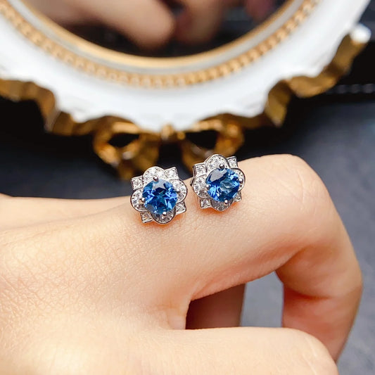 FS Fashion 5mm Natural Topaz Earrings S925 Sterling Silver Simple Fine Charm Weddings Jewelry for Women MeiBaPJ Certificate