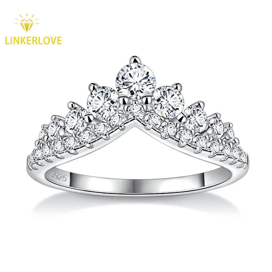 LinkerLove S925 Sterling Silver Rings D Color Moissanite Crown Wedding Bands Anniversary Gift Classic Trendy Engagement Jewelry
