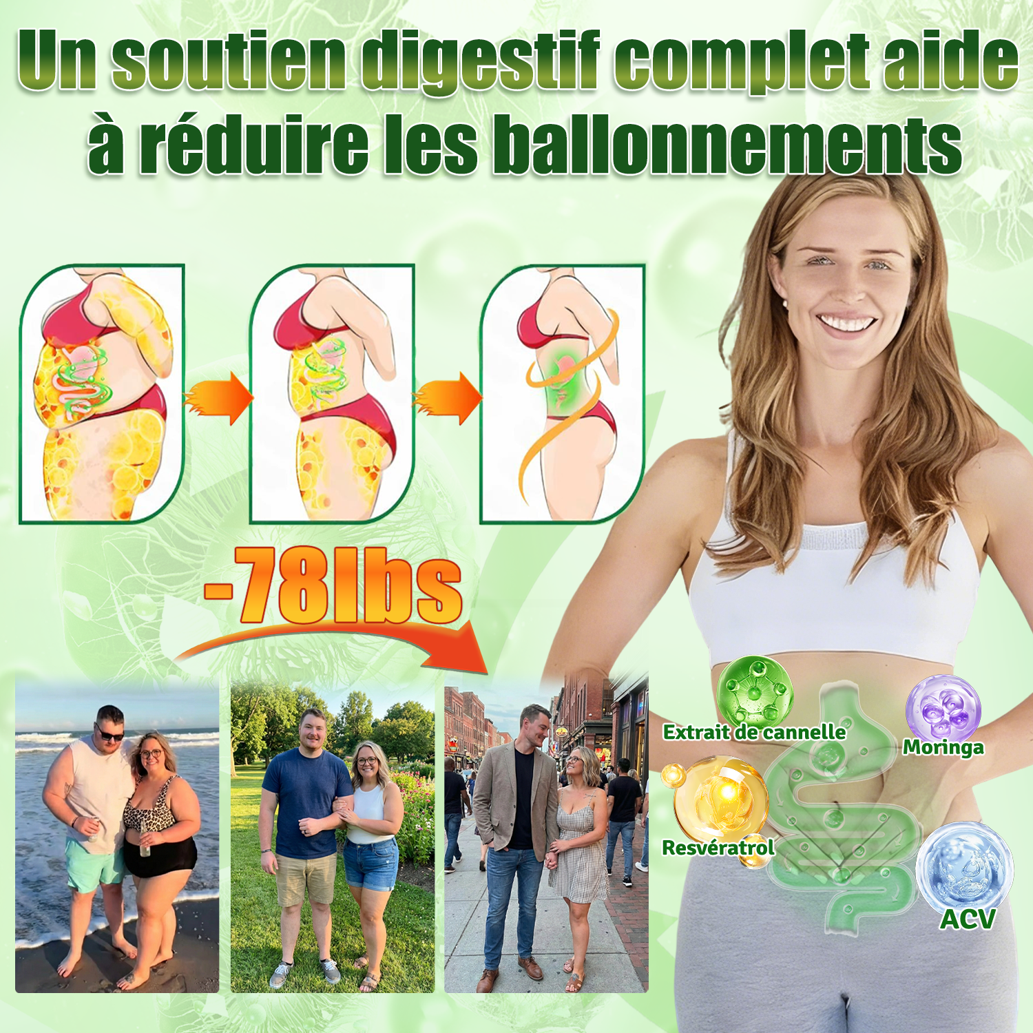 Spรฉcialement formulรฉ avec du resvรฉratrol pour aider ร reconstruire et rรฉรฉquilibrer le microbiome intestinal.En restaurant le niveau des bonnes bactรฉries, cette formule aide ร rรฉduire lโinflammation intestinale ร la source et ร soulager les ballonnements rรฉcurrents, la constipation, lโindigestion et le reflux acide โ afin de ramener le systรจme digestif vers un รฉtat de santรฉ intestinale plus fluide et plus stable.
